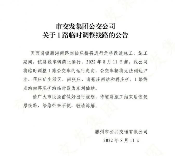 關(guān)于1路臨時(shí)調(diào)整線路的公告