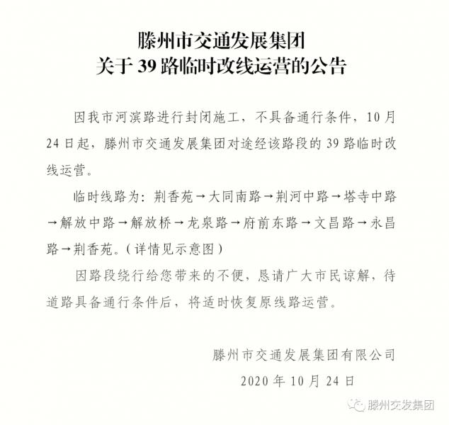 關(guān)于39路臨時(shí)改線運(yùn)營的公告
