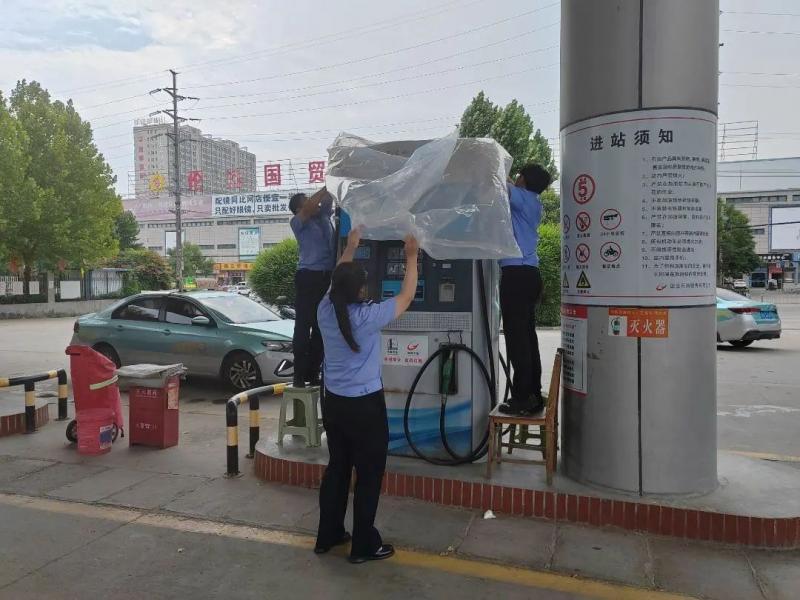 本次檢查主要對(duì)加油站排水系統(tǒng)、儲(chǔ)油設(shè)施、防汛物資儲(chǔ)備情況等方面進(jìn)行重點(diǎn)排查,對(duì)可能出現(xiàn)的汛情隱患進(jìn)行現(xiàn)場(chǎng)排查處理。工作人員利用沙袋、塑料布等對(duì)油罐觀察井和管道溝進(jìn)行封堵、并對(duì)加油機(jī)進(jìn)行遮蓋,做好油罐水位的監(jiān)測(cè)工作,防止發(fā)生因油罐水位超標(biāo)引發(fā)的加油站油品質(zhì)量事故。同時(shí)嚴(yán)格按照加油站雷電防范規(guī)范進(jìn)行操作。