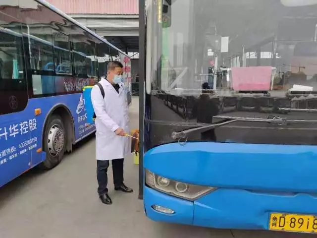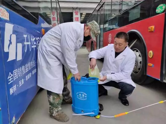這哥倆立即協(xié)商,按照區(qū)域位置劃分,既要全部防控,不留遺漏,又要省時(shí)省力,不做無(wú)用功的原則進(jìn)行了分工。任務(wù)明確后,第二天就組建起二支“公交防疫消毒先鋒隊(duì)”,各自帶隊(duì)進(jìn)車輛,到場(chǎng)站,開(kāi)始了全面消毒工作。每名“公交防疫消毒先鋒隊(duì)”成員嚴(yán)格執(zhí)行車廂內(nèi)頂棚、車門、地板、扶手、座椅以及座位死角進(jìn)行重點(diǎn)消毒,場(chǎng)站和候車亭地面、垃圾箱、座椅也是一處不少。隊(duì)員們每日換工作服、接水、調(diào)配消毒藥水有條不紊地開(kāi)展工作,揮動(dòng)消毒器不計(jì)其數(shù),冬日里也濕透了內(nèi)衣。